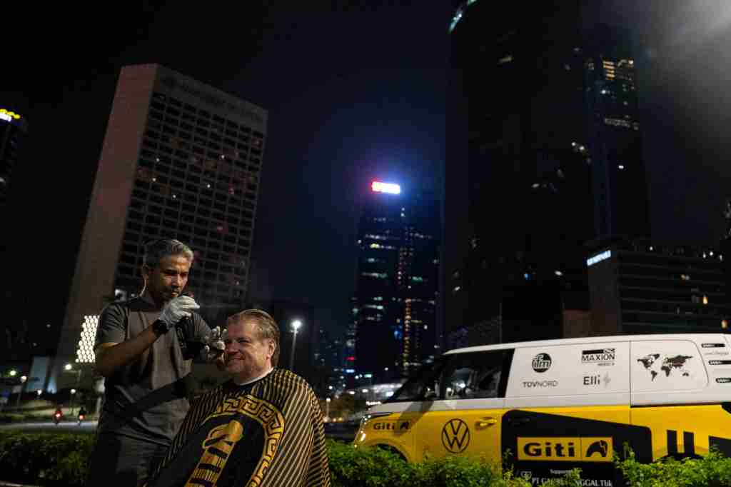 Di satu titik, Rainer ngobrol santai sama sopir bajaj. Di lain tempat, dia berhenti buat nikmatin es cendol di pinggir jalan. Malamnya, dia bahkan potong rambut di kawasan Monas — tanpa rencana, cuma pengin ngerasain apa yang dirasain warga lokal.